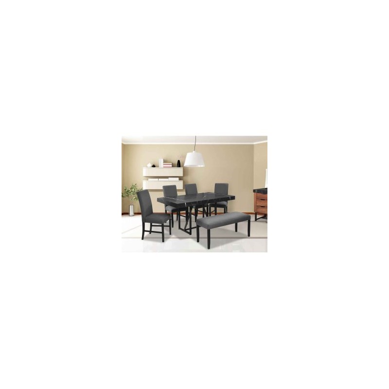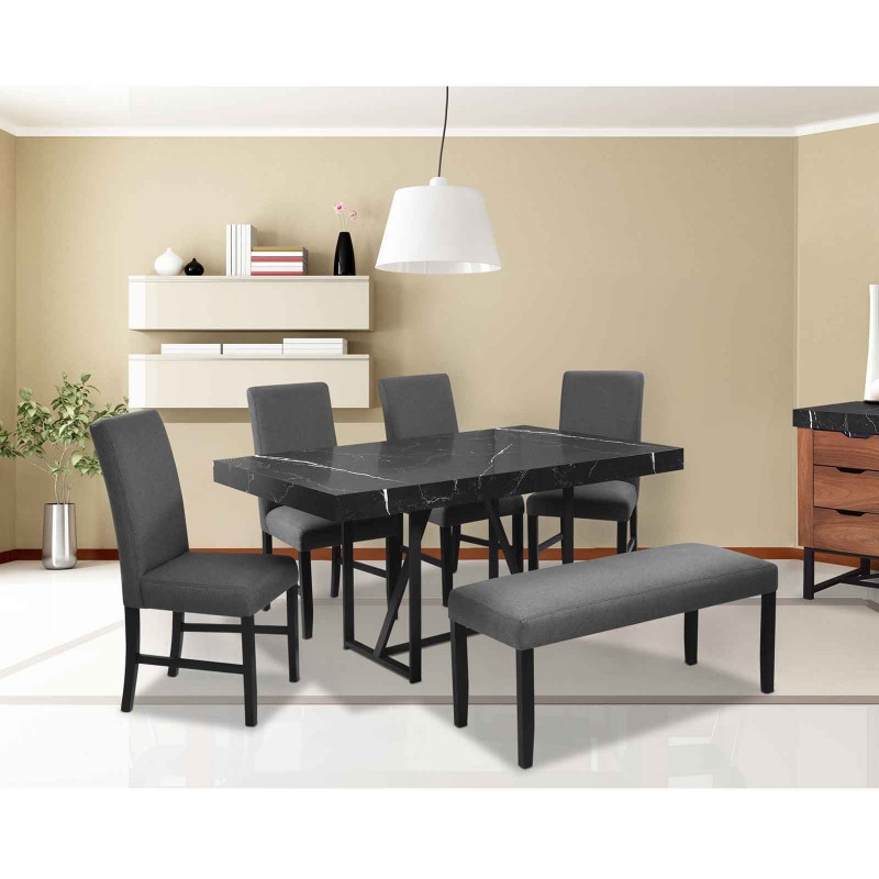 ¡El comedor que estabas buscando!, su combinación en color nogal y simulación mármol negro le brindará ese estilo cálido, misterioso y cool a tu hogar. Haz el match con nuestra sala Sofía black y enamórate de la increíble armonía que creará estas dos piezas fundamentales para tu espacio preferido.